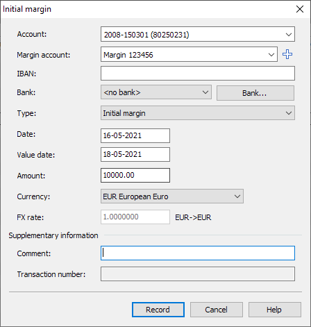 Posting to margin account: positive In order to reflect the sometimes common practice of entering variation margins without first entering an initial margin, it is also possible to enter an initial margin with the amount "0". It is also possible to enter a negative amount, in which case a positive amount is generated in the account.