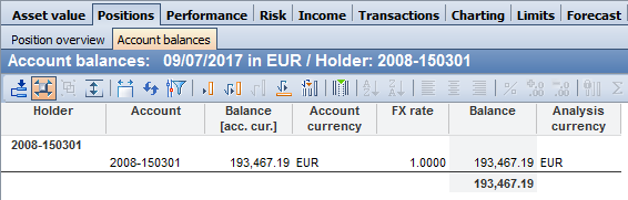 In the workspace of an account, you also have the option of displaying all account balances clearly as an alternative to the all-encompassing transaction list.