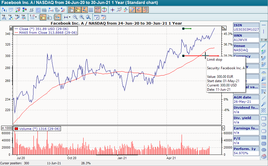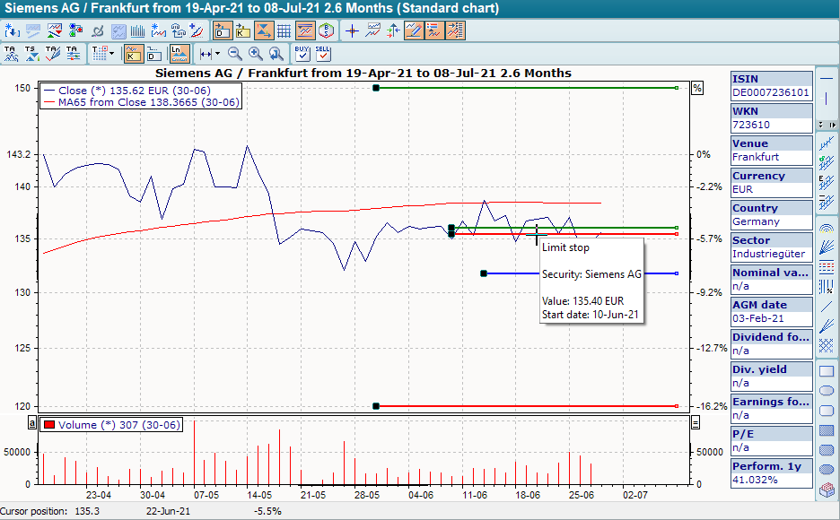 Beispiel für ein Limit im Chart mit abweichender Limit-Währung: