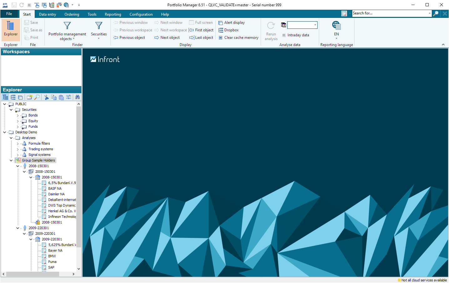 In the Infront Portfolio Manager, the background of the evaluation area is presented in the style of the Infront products: