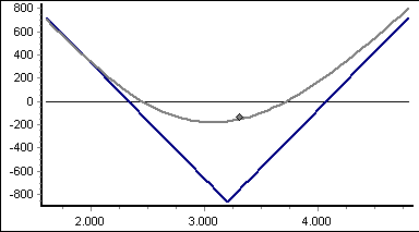 The risk of loss of the long straddle is limited. The maximum loss arises if the price of the underlying is at the level of the strike price, contrary to expectations. It then corresponds to the sum of the premiums paid.