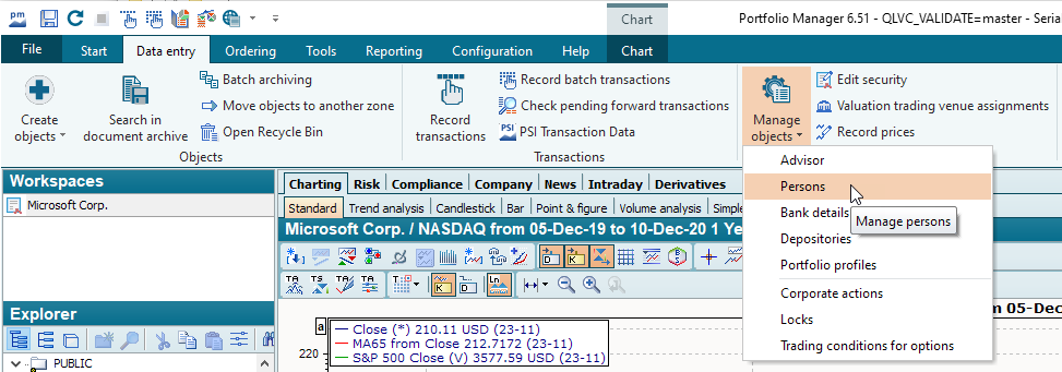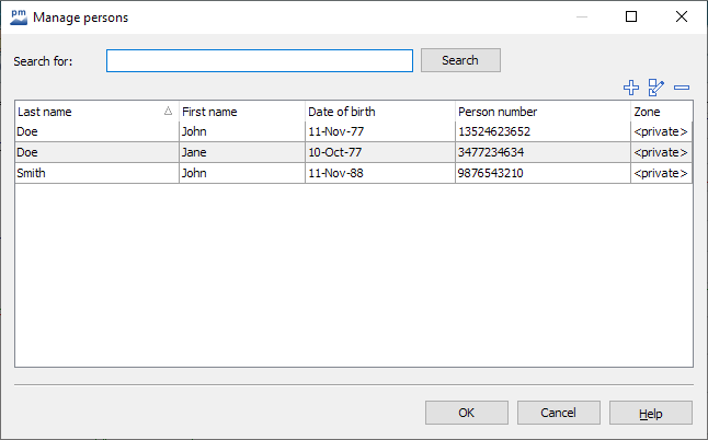 To create new persons or edit existing persons, select the PERSONS command in the "Manage objects" icon menu on the "Data maintenance" tab in the ribbon.
