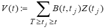 Interest rate instruments such as coupon bonds, zero bonds and floaters can be valued using the present value method: If interest payments Z(tj) are due at times T≥tj≥t during the remaining term of the bond between the valuation time t and the final maturity T , the bond is worth just the sum of the interest payments Z(tj) discounted with the discount factors B(t,tj) at time t :