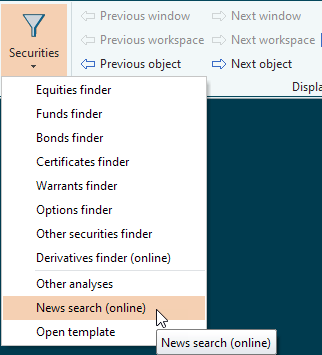 - Open the menu of the Finder icon "Securities" on the "Start" tab and select the command MESSAGE SEARCH (ONLINE).