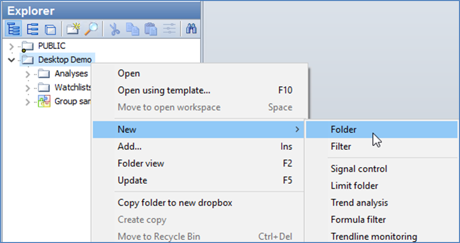 - In the context menu of this folder, select the command NEW, FOLDER and assign a name for the folder in the dialog box that appears and confirm this with "OK". The new folder is automatically created with the selected name.