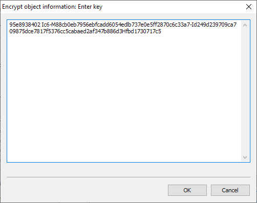 - Enter the desired key in the "Encrypt object information" dialog box that appears.