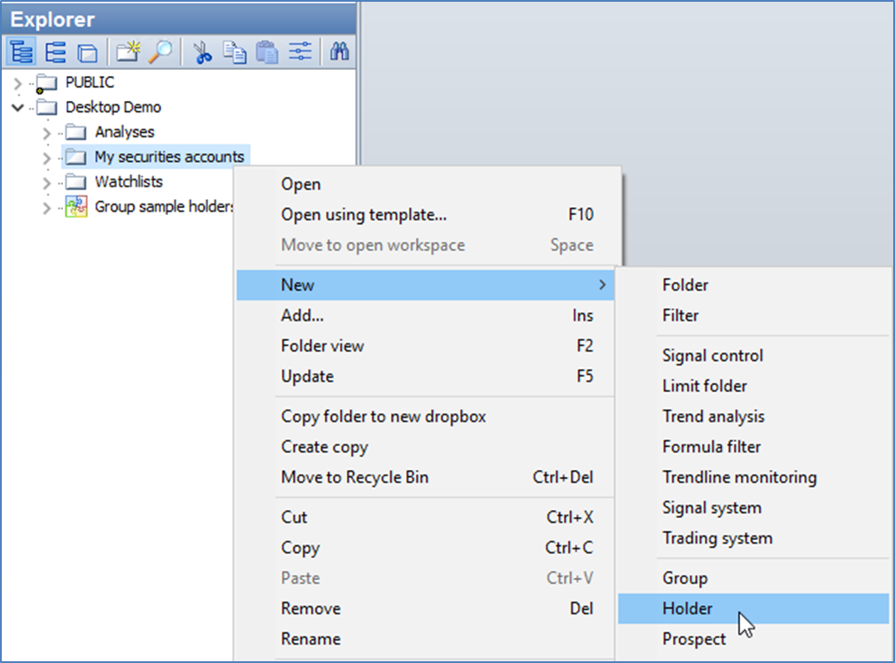 - The context menu opens - with any sub-menus - and contains the main commands.