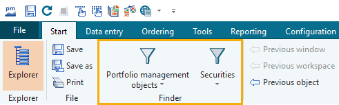 Several finders are already predefined in the Infront Portfolio Manager. Proceed as follows to open the appropriate Finder: