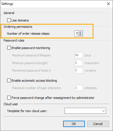 - Then set the desired number in the "Settings" dialog box that appears in the "Ordering rights" area.