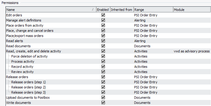 The individual object rights appear under the "Release orders" object right. If you then have the "Configure PSI Order Entry" system right, you can define the release process in the Infront Portfolio Manager based on these rights using the release rules that can be configured via MM-Talk.