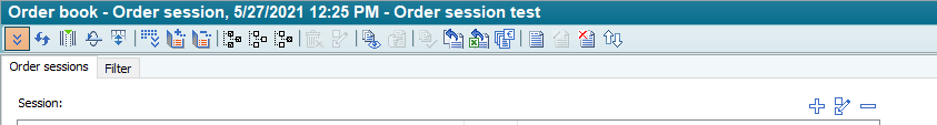 The order session filter is located at the top of the order book. Here you can select the order sessions to be displayed in the order book, create new, empty order sessions, edit or delete order sessions.