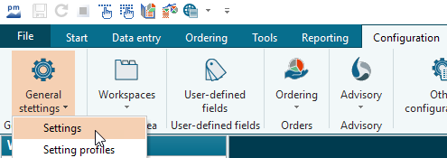 - In the Infront Portfolio Manager ribbon, on the Configuration tab, select SETTINGS from the General Settings icon menu.