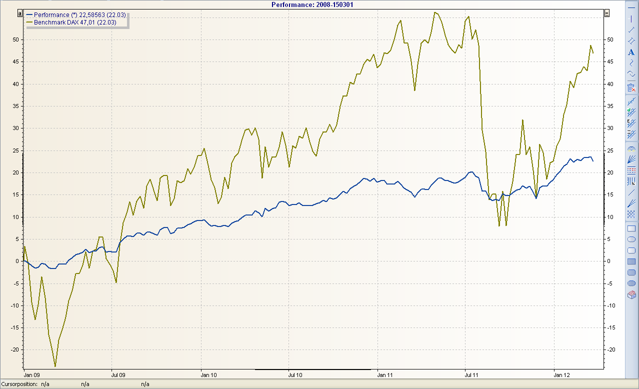 You can modify and optimize the display of the performance chart, e.g. change the time period or draw a comparison value. Almost all the options of the "normal" chart window are available for display and formatting. More on this in the chapter Chart analysis.