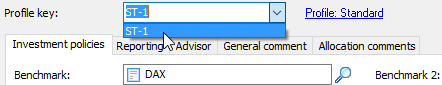 - Then select the desired profile key from the "Profile key" selection list. If this profile key is assigned to a portfolio profile, the name of the portfolio profile appears next to the selection list.