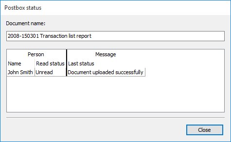 In the "Postbox status" dialog box that appears, the statuses for all relevant persons for this document are listed in a table.