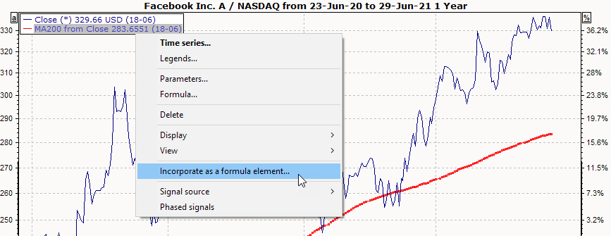- To do this, select the command APPLY AS FORMULA ELEMENT... in the context menu of the time series you have defined.