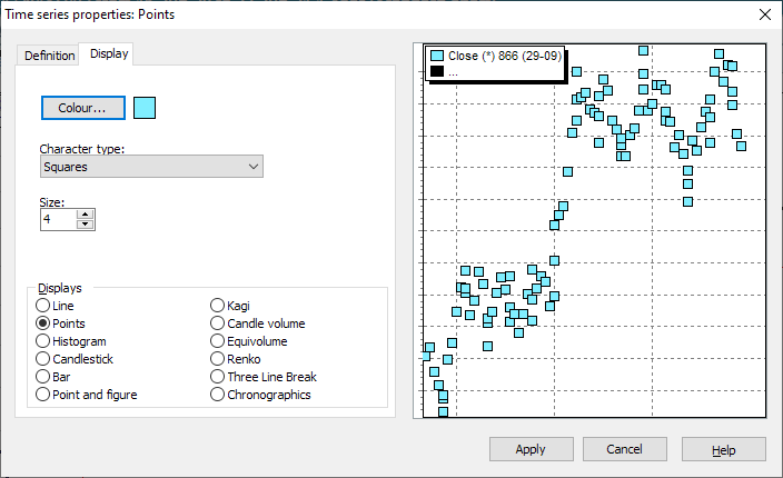To display a time series as a point chart, select the price trend and choose the command DISPLAY, POINTS from the context menu.