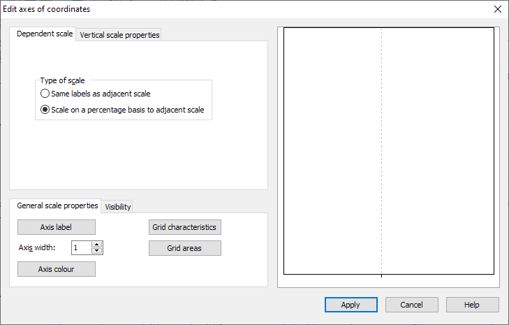 The settings for the right axis are displayed in the "Edit coordinate axes" dialog box, usually on the "Dependent scale" tab, as the right axis is usually based on the left axis. If you assign a time series to the right-hand axis, the "Vertical scale" tab is displayed accordingly. - You can change these options by clicking on the fields or checkboxes.