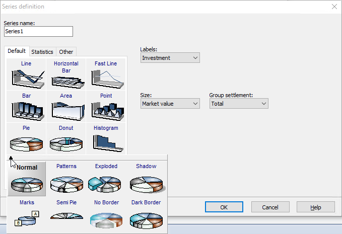 The "Series definition" dialog box opens. - Select a display type from the gallery. The available types are divided into the categories "Standard", "Statistics" and "Other".