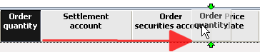 In this example, the "Order pieces" column is moved to the right of the "Order securities account" column. - Proceed in the same way for all other columns to be moved.