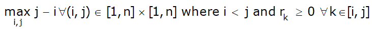 The maximum continuous profit (in the sense of a positive return) in a period [from; to] is the greatest possible increase in value achieved without interim loss in this period: