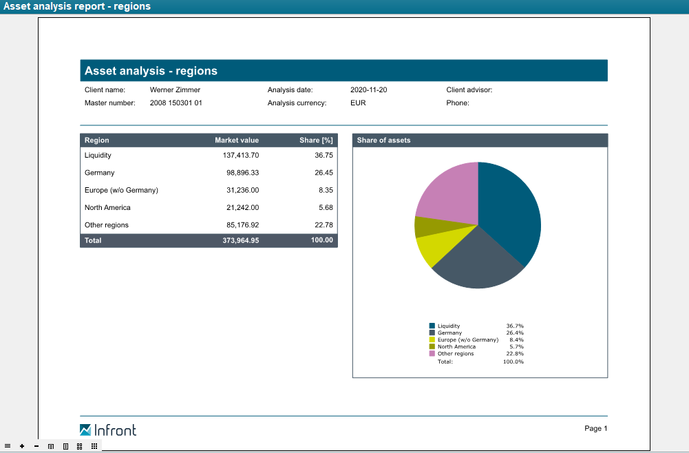The regions can be customized in the Infront Portfolio Manager with the licensed module "Portfolio Service Extended Portfolio Analysis".