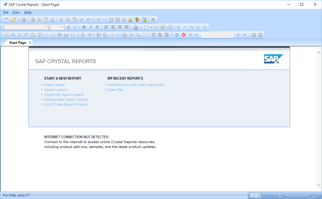 To start the Report Designer, select the <SAP Crystal Reports 2016> app in your Windows start menu.