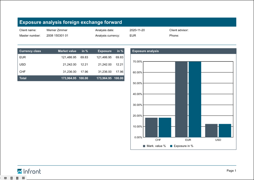 With the "DTG exposure analysis" report, you can document the effects of your hedging strategies via forward exchange transactions on the individual currency classes.