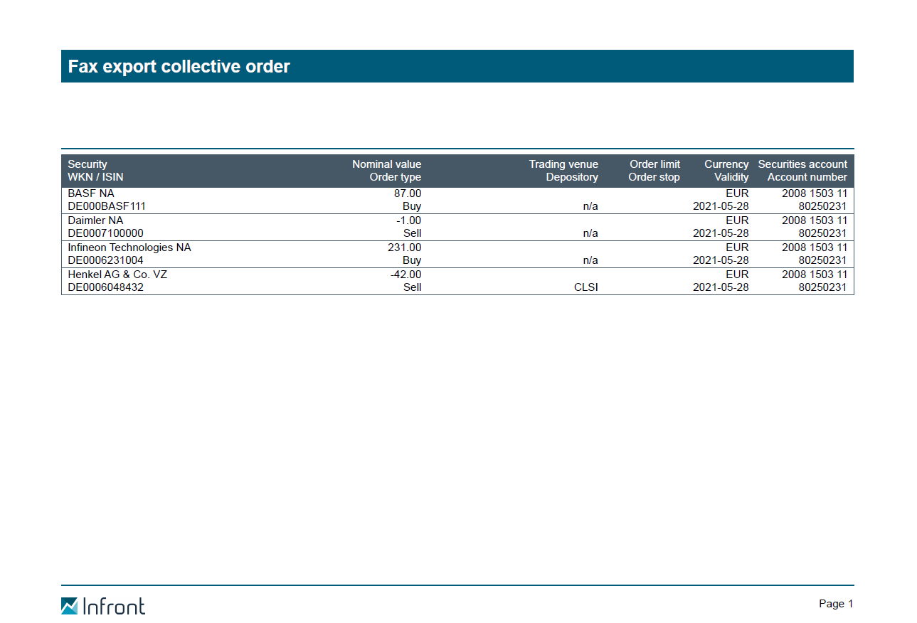 The fax export also enables the connection of banks to which no electronic order connection is available.
