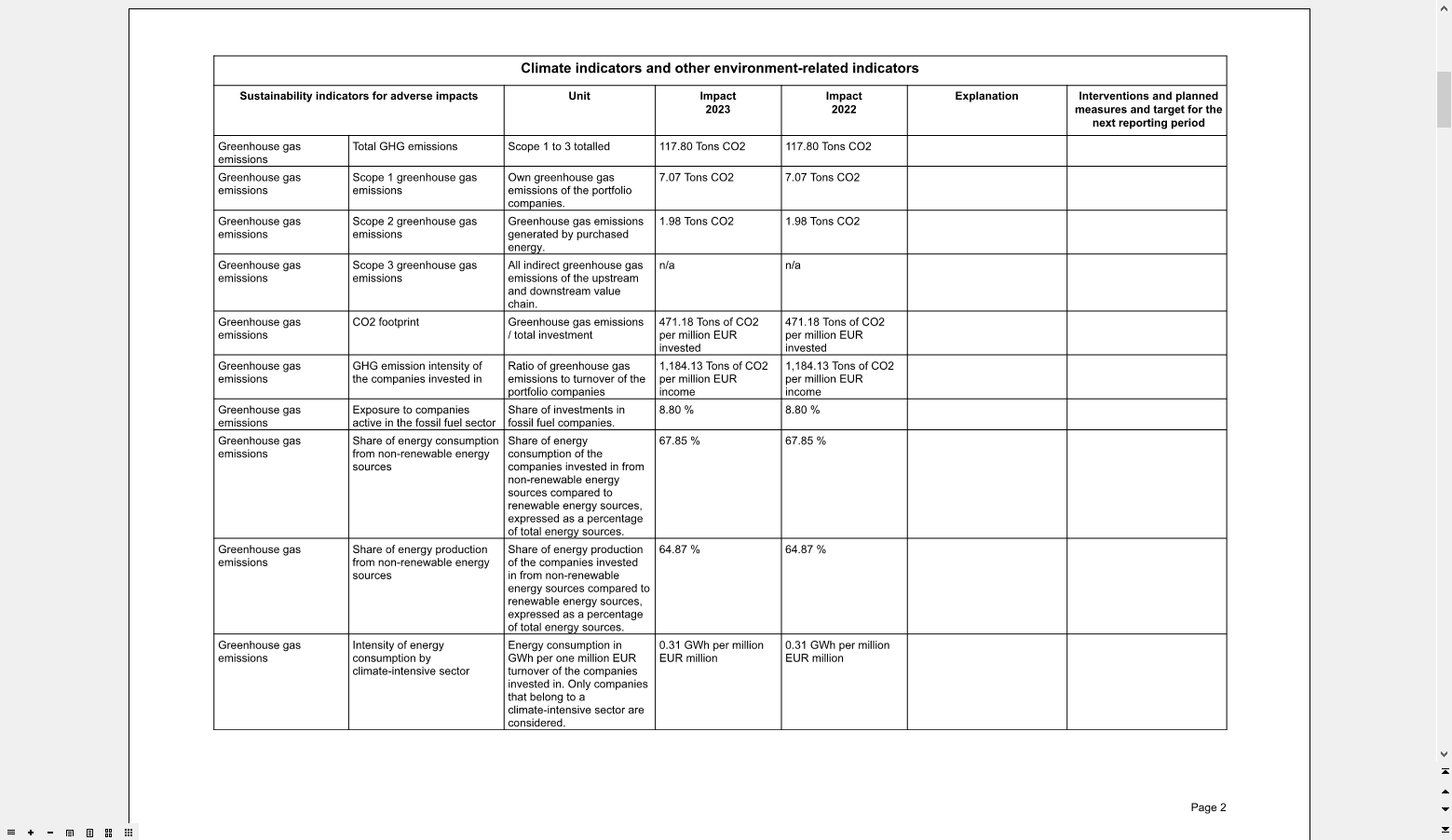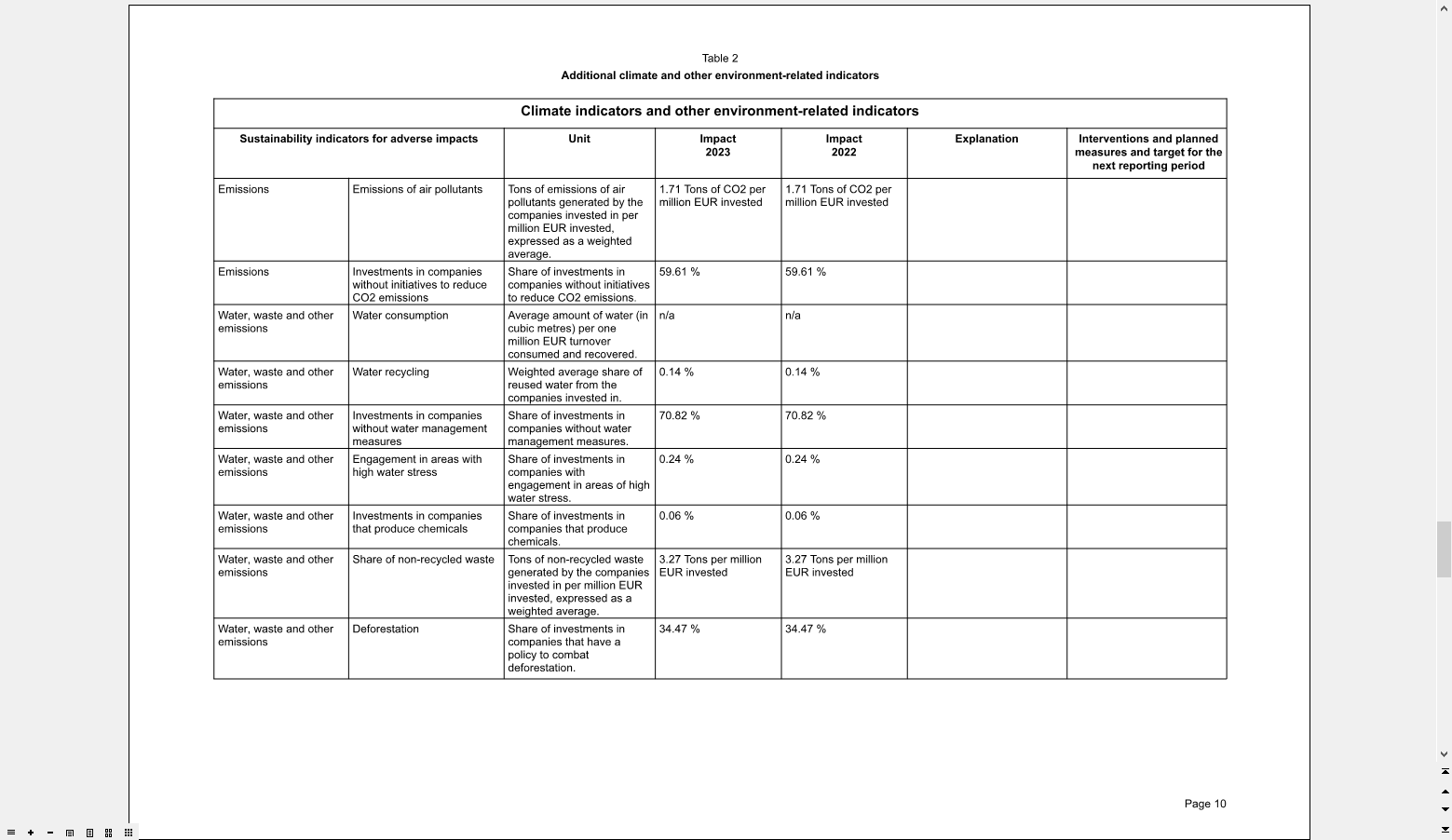 The indicators listed here can also be found in the following Table 2 "Additional climate and other environment-related indicators". You can show and hide the indicators using the T2 parameters of the report . Please note that you must list at least one of the indicators available here. - Information on the main adverse impacts on sustainability factors in accordance with Article 6(1)(b) (based on the template in Table 3)