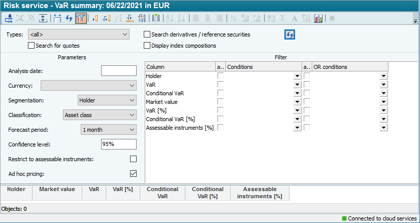This evaluation is an optimized version of the VaR overview for the risk service.