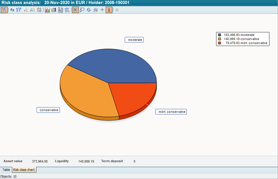 The pie chart shows the value share of the individual portfolio items grouped by risk class.