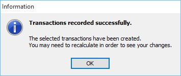 Once all transactions have been booked, Infront Portfolio Manager informs you with a message window. To see the changes in open evaluations, you must re-evaluate the evaluations.