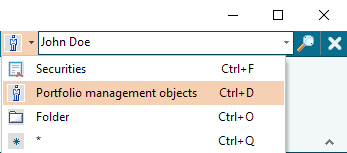 To find and open an object (e.g. a holder), use the search field (Quick-Search) in the ribbon of the Infront Portfolio Manager.
