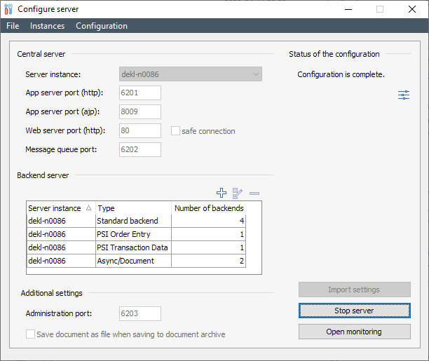 You can start the tool via the <Configure server> command in the Windows start menu. The following configuration interface is then available to you.