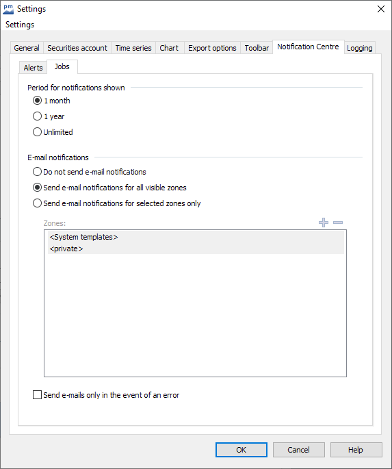 - If you also want to send emails for jobs that have been completed without errors, deactivate the "Only send emails if errors have occurred" checkbox.