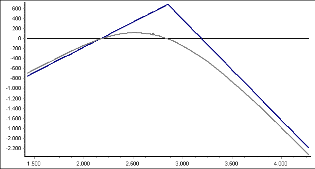 A short strap quickly loses value, especially if prices rise sharply contrary to expectations, and the short strip loses value if prices fall sharply.