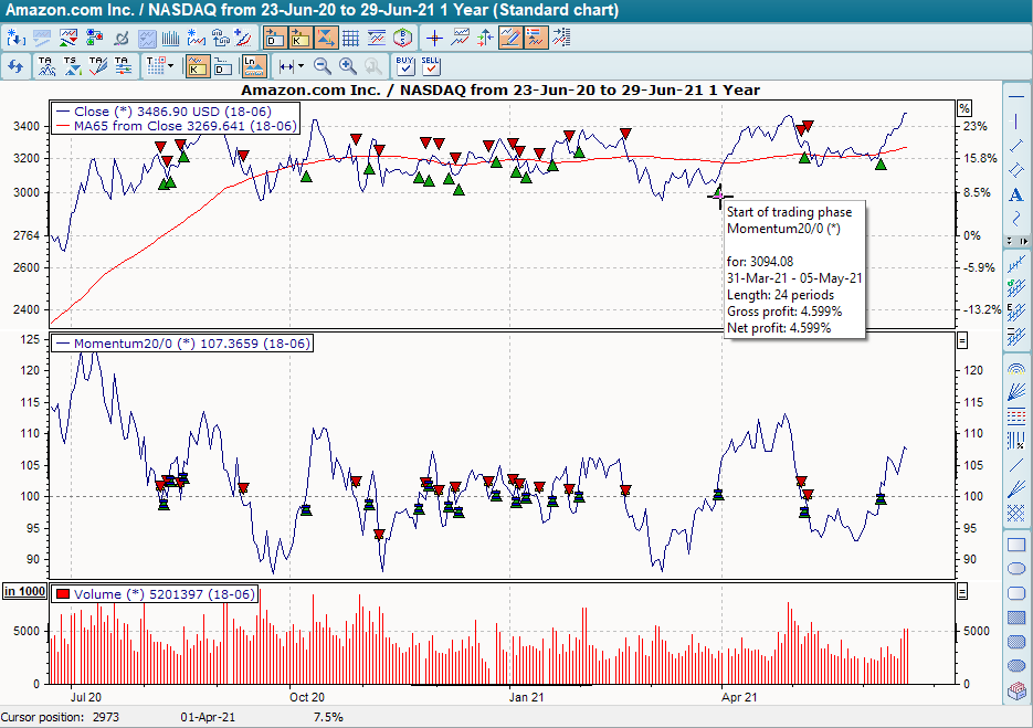 Click on the "Show base trading systems" icon in the chart and select a base trading system from the list, e.g. momentum.
