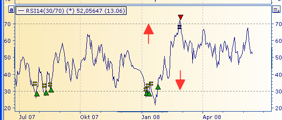 Auxiliary lines are usually horizontal lines that are displayed in the chart for trading systems. These lines generate a signal for the trading system (such as the 30 line in the RSI) or indicate certain price levels.