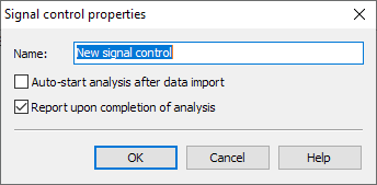 - Enter a name in the "Signal control properties" dialog box that appears and specify whether a message should be issued at the end of the evaluation.