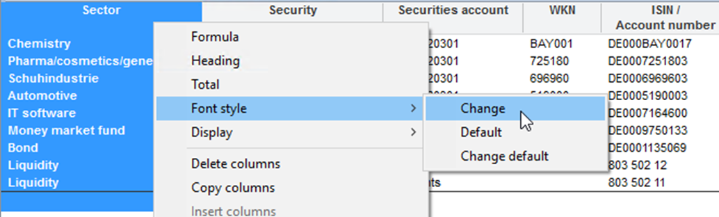 You can access all frequently used functions for the columns of a table via the context menu of the columns (headings) or the icons and commands on the "Table" tab in the ribbon.