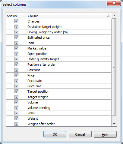 - Activate the checkboxes for the columns to be shown or deactivate the checkboxes for the columns to be hidden.