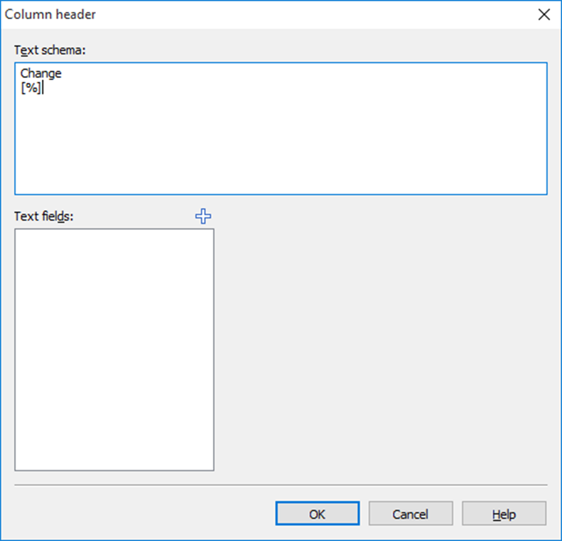 The "Column heading" dialog box appears, in which you can define the heading of the new column, e.g. "Change [%]".