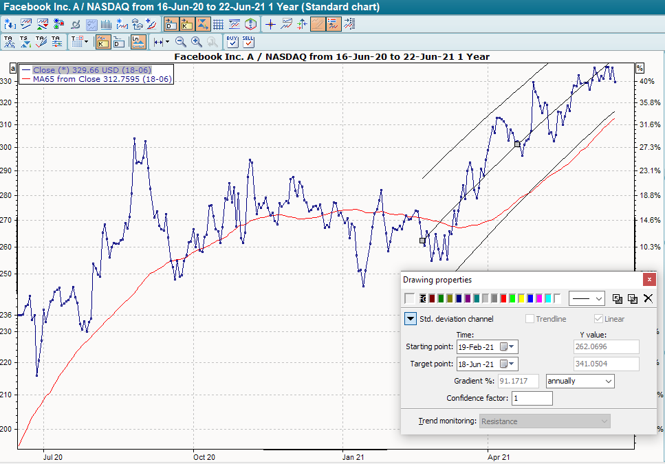 Proceed as follows to draw a standard deviation channel in a chart: