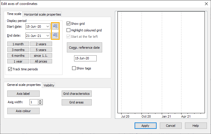 - Double-click on the time scale to open the "Edit coordinate axes" dialog box.