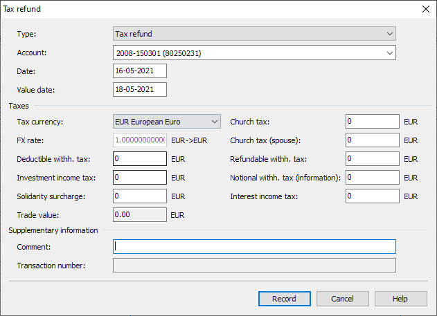 Use this transaction type to enter tax refunds. Proceed as follows: