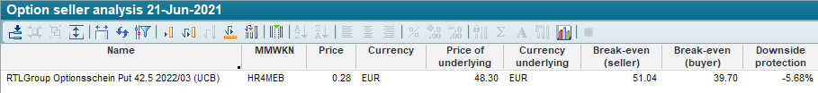 The option writer analysis compiles key figures on the option writer perspective on options and warrants. The starting point here is that the corresponding offsetting position is also included in the portfolio when the option is sold as cover.