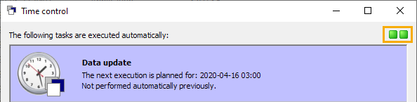 Right status icon | Is the time control running? This status icon on the right is green if at least one task has already been configured. Time control is only triggered when you exit the "Time control" dialog box with "OK". The right-hand status icon therefore does not change colors during setup. |