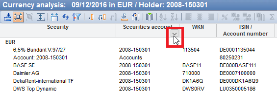 To quickly deactivate an active filter, hold down the <CTRL> key on your keyboard while clicking on the small filter symbol at the bottom right of the column header.