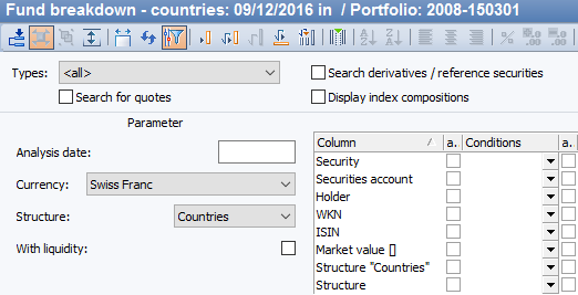 A context menu is defined for some of these fields so that you can make your settings even more quickly. For the "Evaluation date" field, you can use the context menu to select the start of the month or the start of the quarter as an entry, for example; any other date can be entered in the form dd.mm.yyyy.
